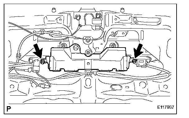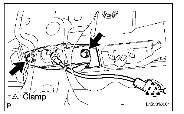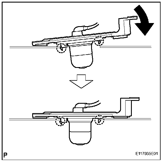 a. Engage the 2 claws to temporarily install the television camera assembly from to the luggage compartment as shown in the illustration.