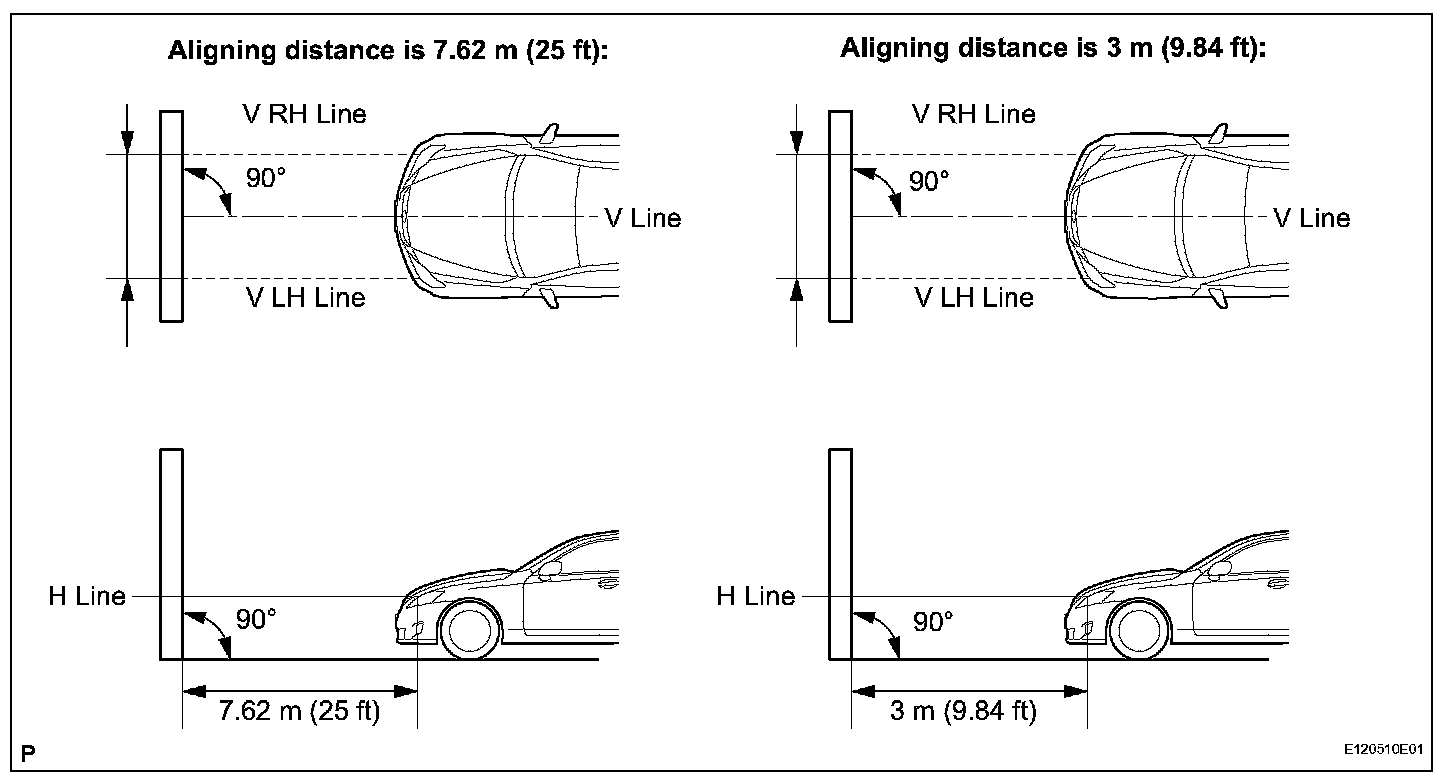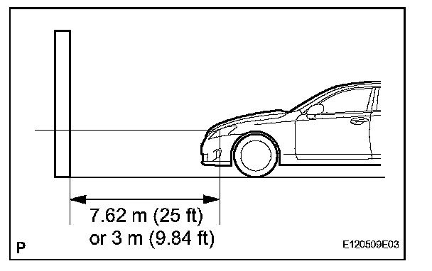 - Create a 7.62 m (25 ft) distance between the vehicle (headlight bulb center) and the wall.