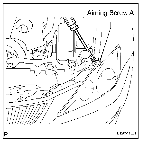 Adjust the headlight aim into the specified range by turning aiming screw A with a screwdriver.