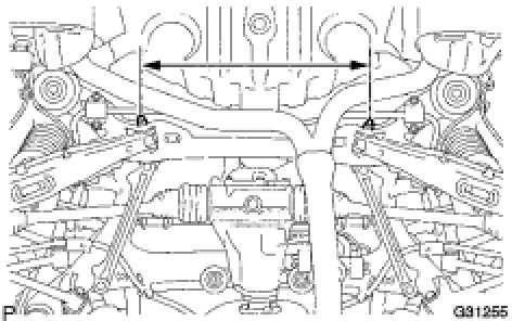 (1) Measure the distance between the centers of the installation bolts of the rear No. 2 suspension arm assembly LH and RH.