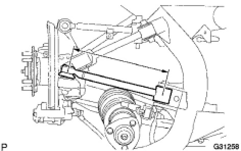 (1) Measure the distance between the centers of the installation bolt of the rear upper No. 2 control arm assembly and the ball joint stud.