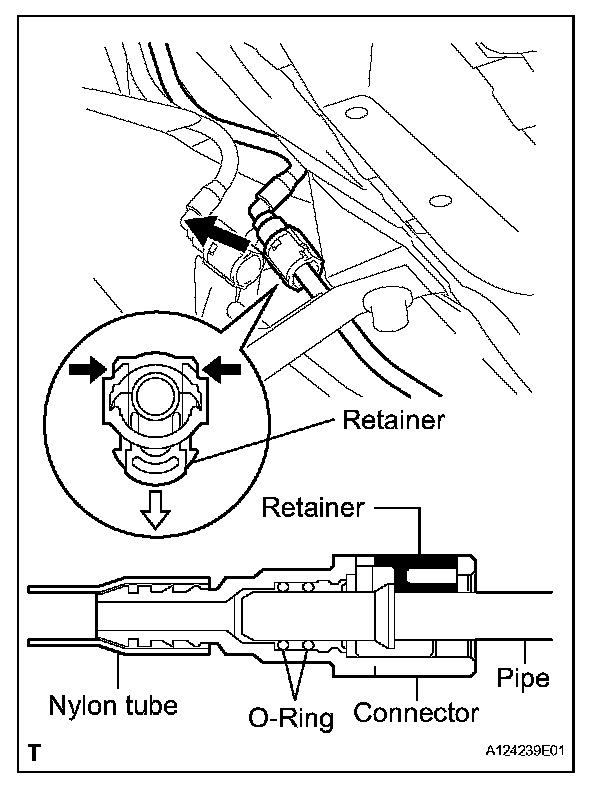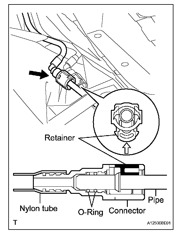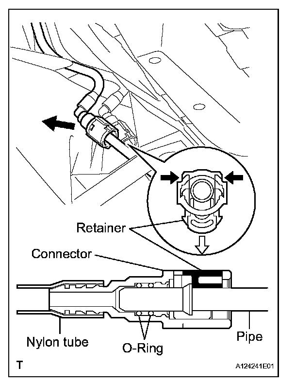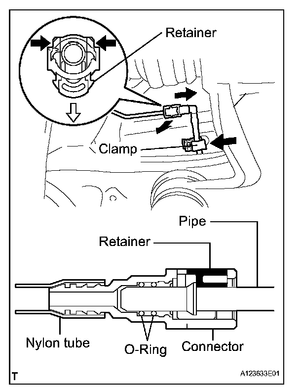 - Do not allow any scratches or foreign objects on the parts when disconnecting, as the fuel tube connector has O-rings that seal the pipe.