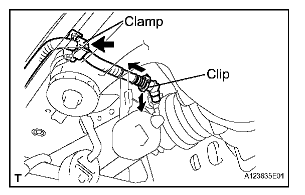 b. Remove the clip and disconnect the No. 3 fuel hose sub-assembly.