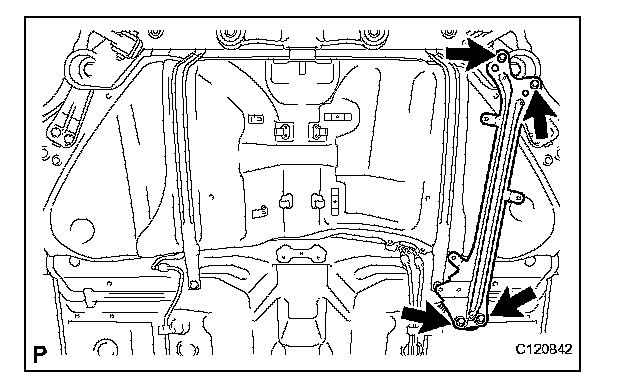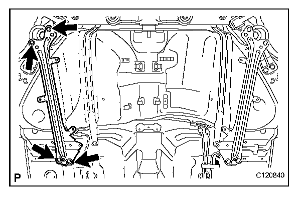 b. Remove the 4 bolts and disconnect the 2 parking brake cables.