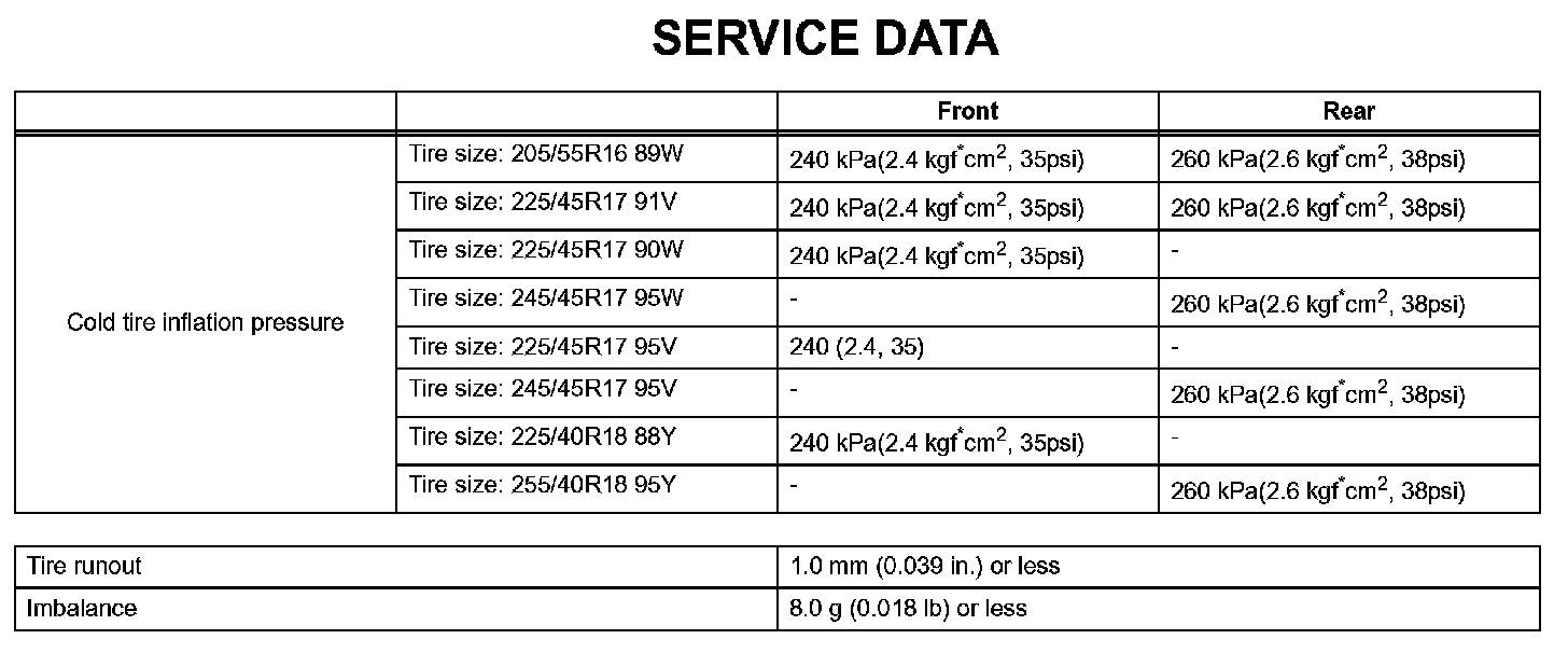 Tire And Wheel - Service Data: