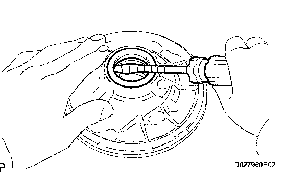 a) Using a screwdriver with its tip wrapped with tape, remove the oil seal.