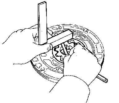 c) Using a feeler gauge, measure the clearance between the driven gear teeth and the drive gear teeth.