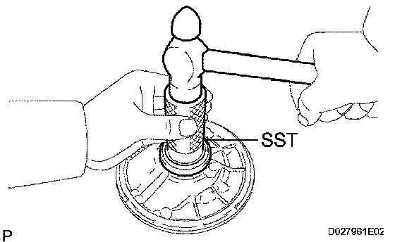 a) Using SST and a hammer, install a new oil seal.