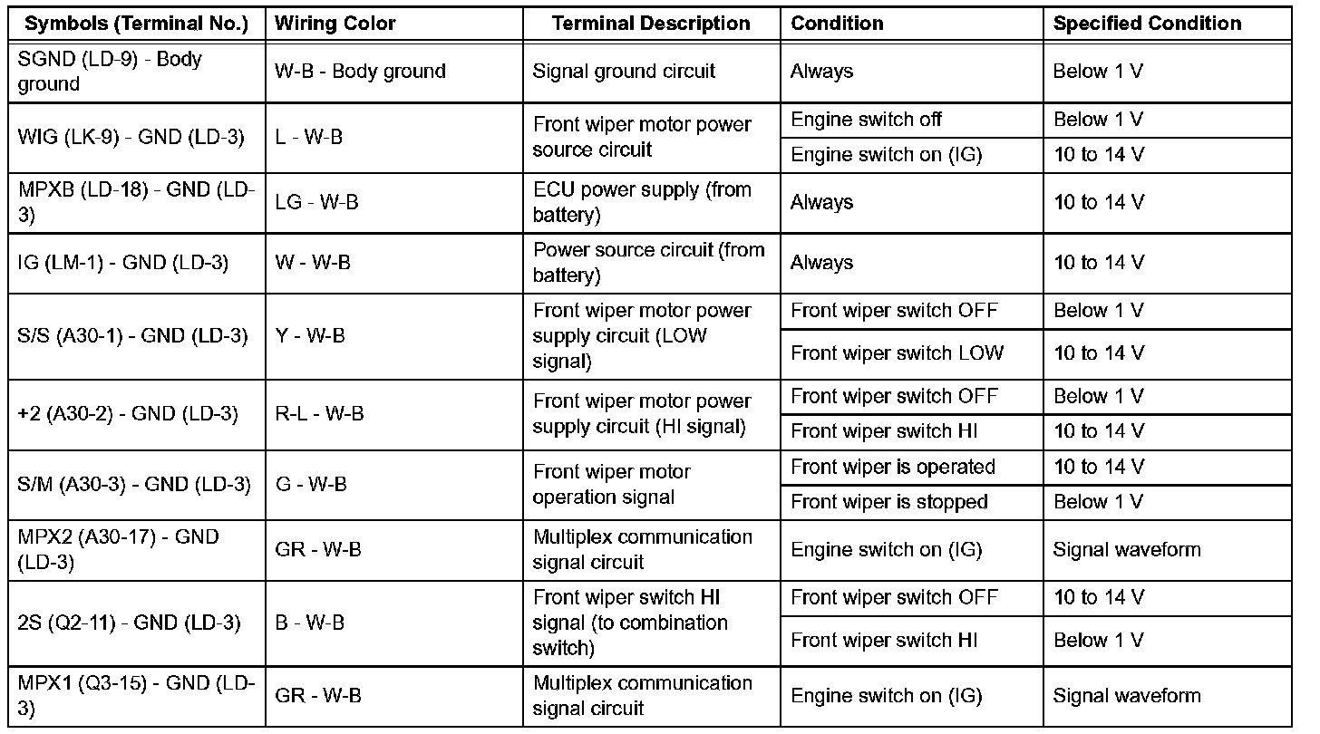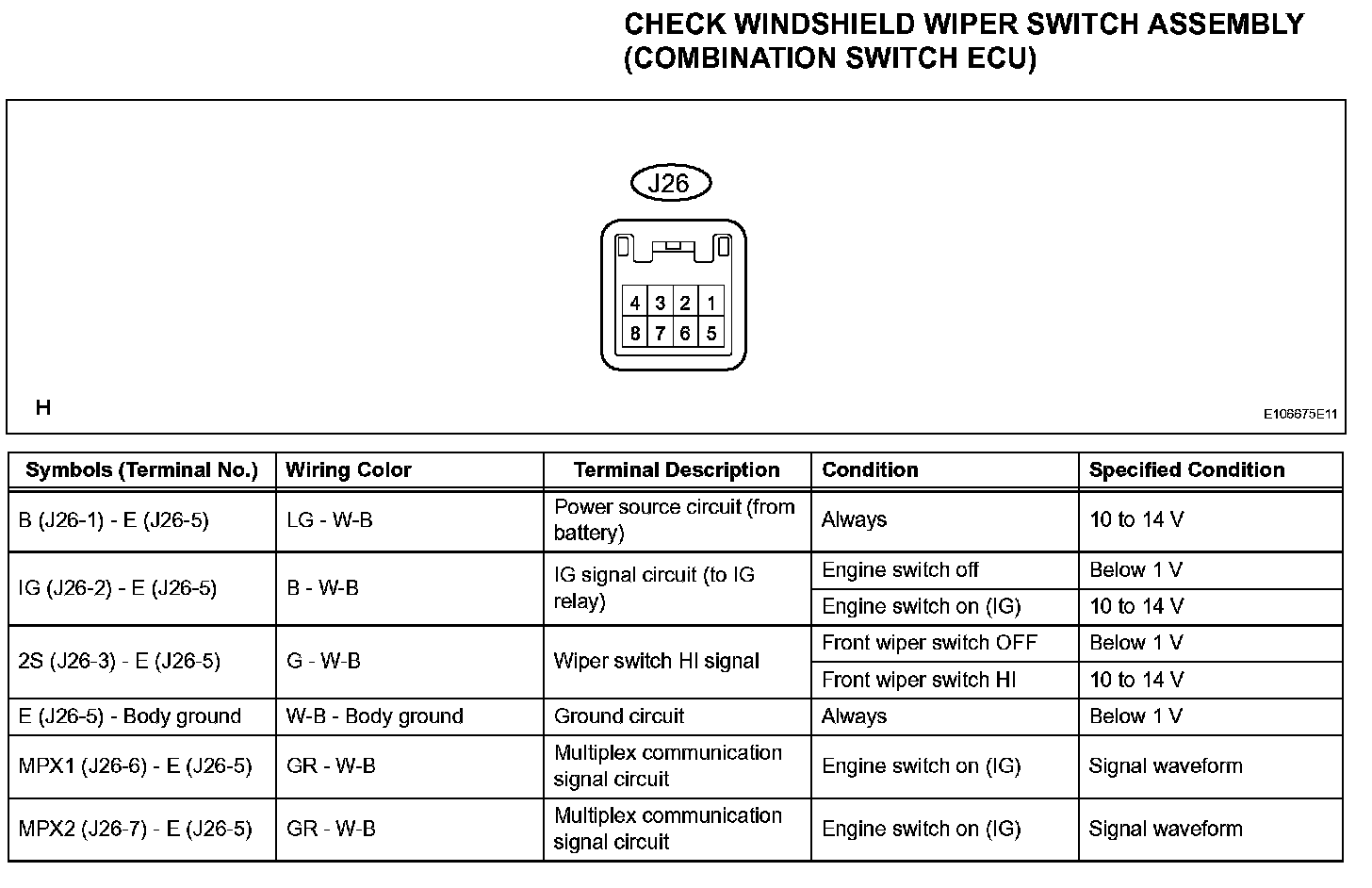 Terminals Of Control Module/Pinouts - Check Windshield Wiper Switch Assembly (Combination Switch ECU):