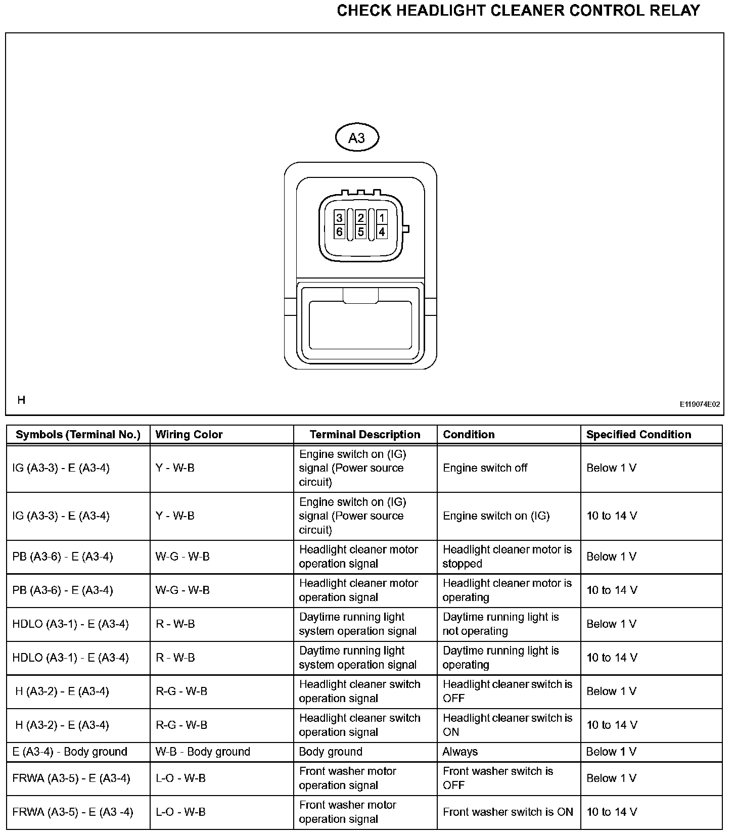 Terminals Of Control Module/Pinouts - Check Headlight Cleaner Control Relay: