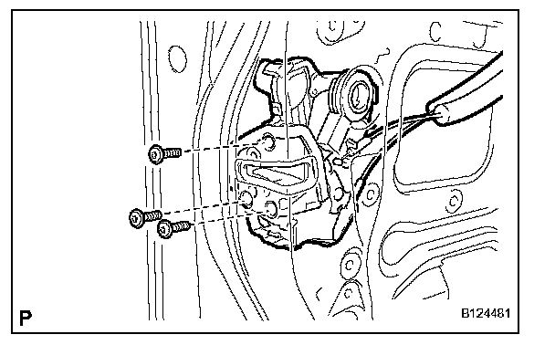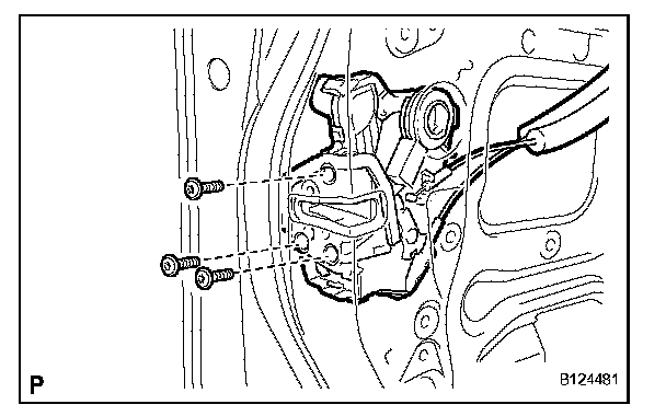 h. Using a "torx" socket wrench (T30), install the front door lock assembly with the 3 screws.