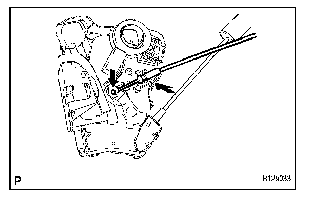 c. Remove the front door lock open rod from the front door lock assembly.