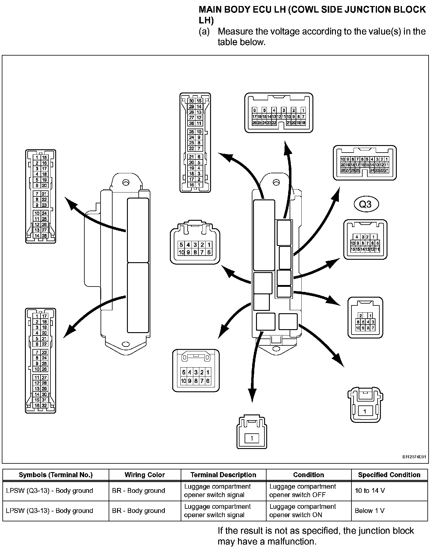 Terminals Of Control Module/Pinouts - Main Body ECU LH (Cowl Side Junction Block LH):