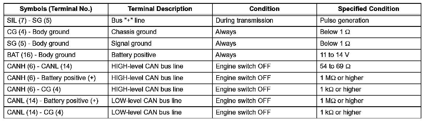 If the result is not as specified, the DLC3 may have a malfunction. Repair or replace the harness and connector.