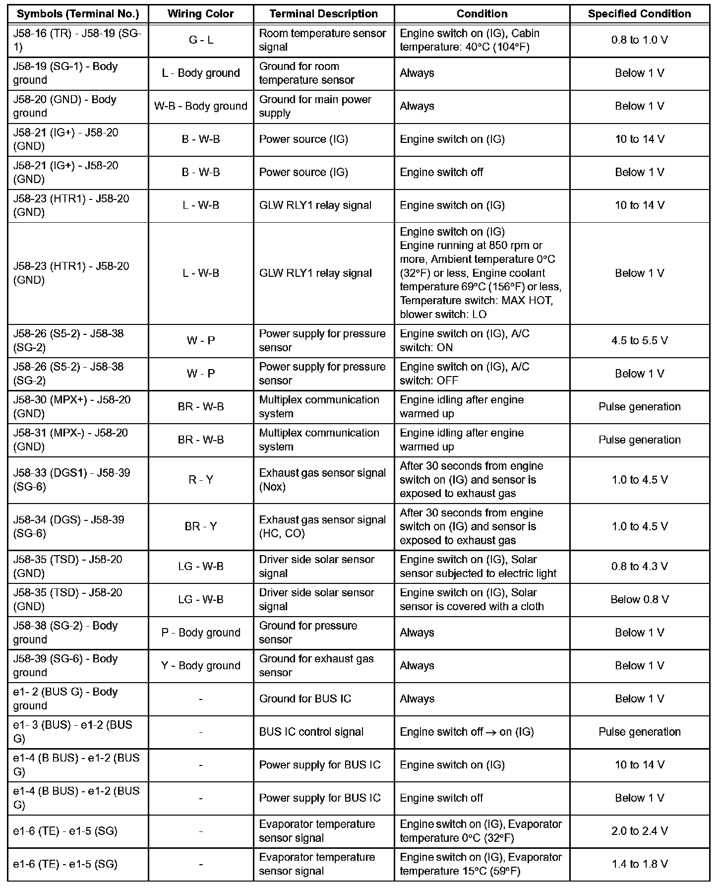 Terminals Of Control Module/Pinouts - Air Conditioning Amplifier (Part 2):