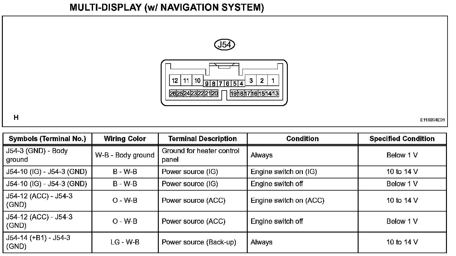 Terminals Of Control Module/Pinouts - Multi-Display (w/ Navigation System):