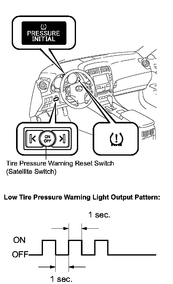 c) Check that the low tire pressure warning light blinks 3 times (1 second ON, 1 second OFF). If the engine is on, "PRESSURE INITIAL" will be displayed on the multi-information display.