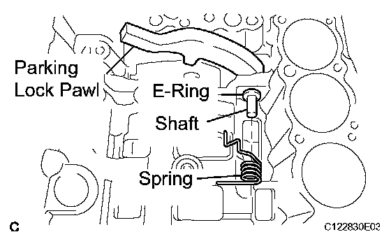 b) Install a new parking lock pawl, the shaft and the spring.
