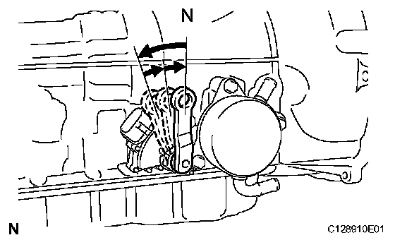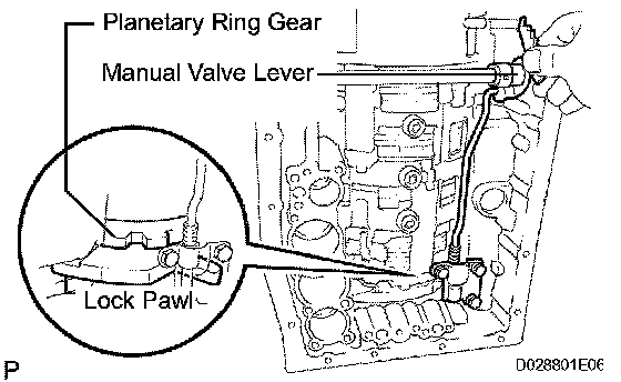 b) Shift the manual valve lever to the P position, and confirm that the planetary gear is correctly locked up by the lock pawl.