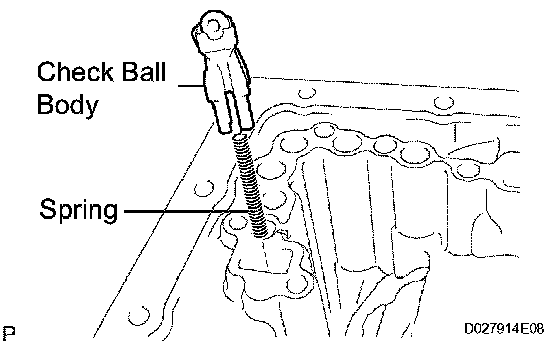 a) Install the check ball body and the spring.