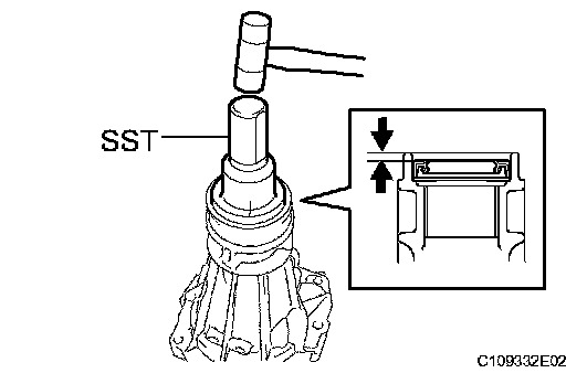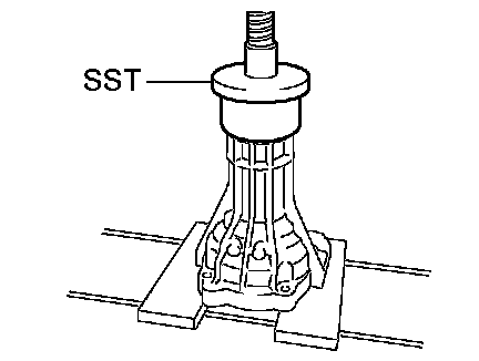 b) Using SST and a hammer, install a new oil seal until it fits with the extension housing.