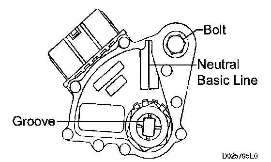 d) Align the neutral basic line with the switch groove as shown in the illustration, and tighten the adjusting bolt.
