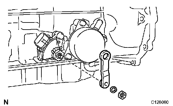 b) Install a new lock washer. Install and tighten the nut.