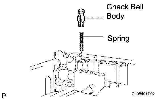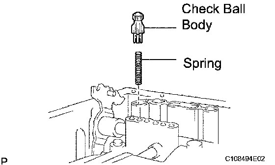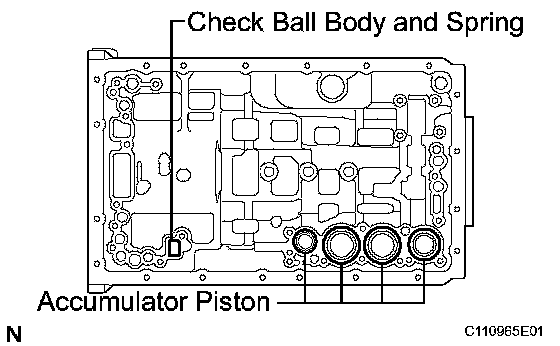 b) Check the accumulator pistons, check ball body and spring as shown in the illustration.