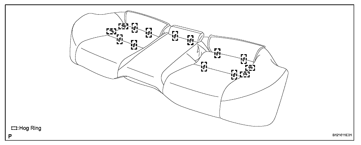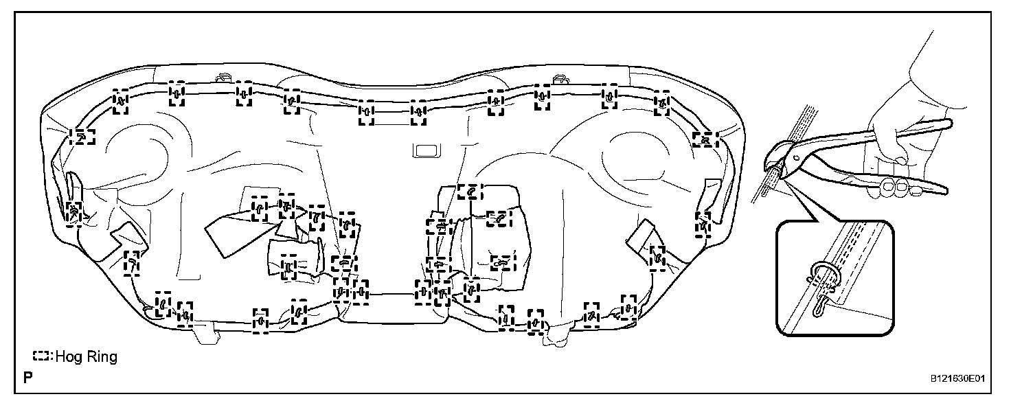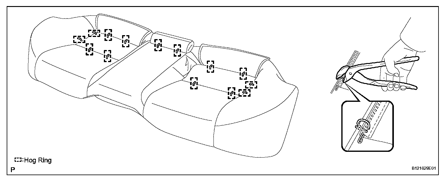 a. Using hog ring pliers, install the seat cushion cover to the seat cushion frame (with pad) with new hog rings.