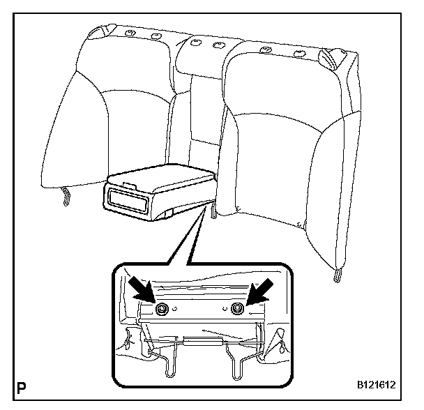 a. Remove the 2 nuts and rear center seat armrest assembly.