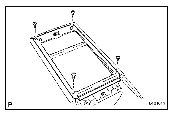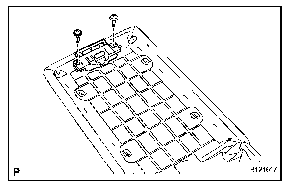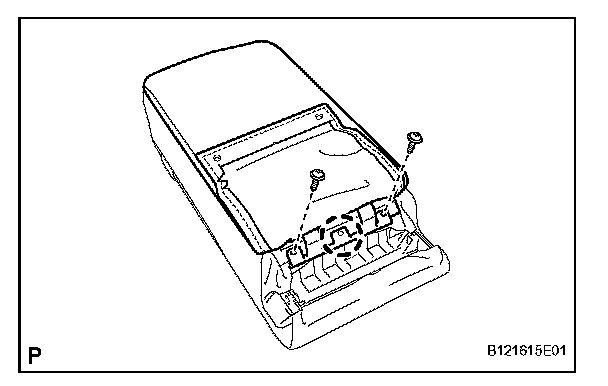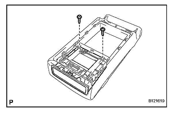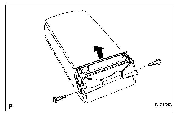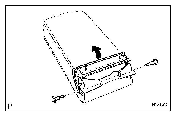 b. Remove the 2 screws and rear center seat armrest cup holder sub-assembly.