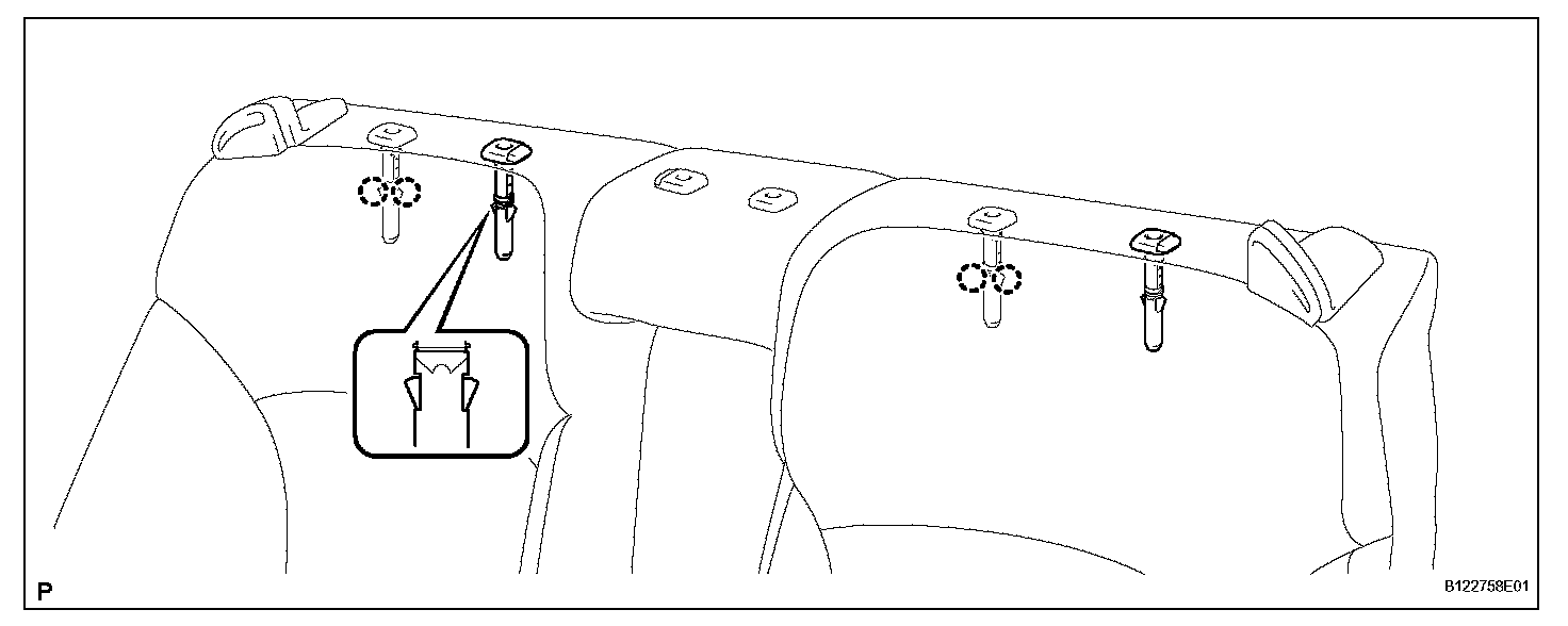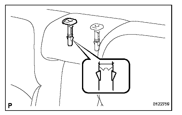 a. Disengage the 2 claws and remove the rear seat headrest support.