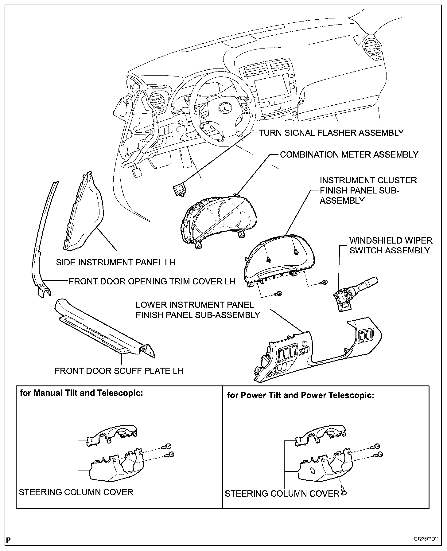 1. REMOVE STEERING COLUMN COVER (for Manual Tilt and Telescopic)