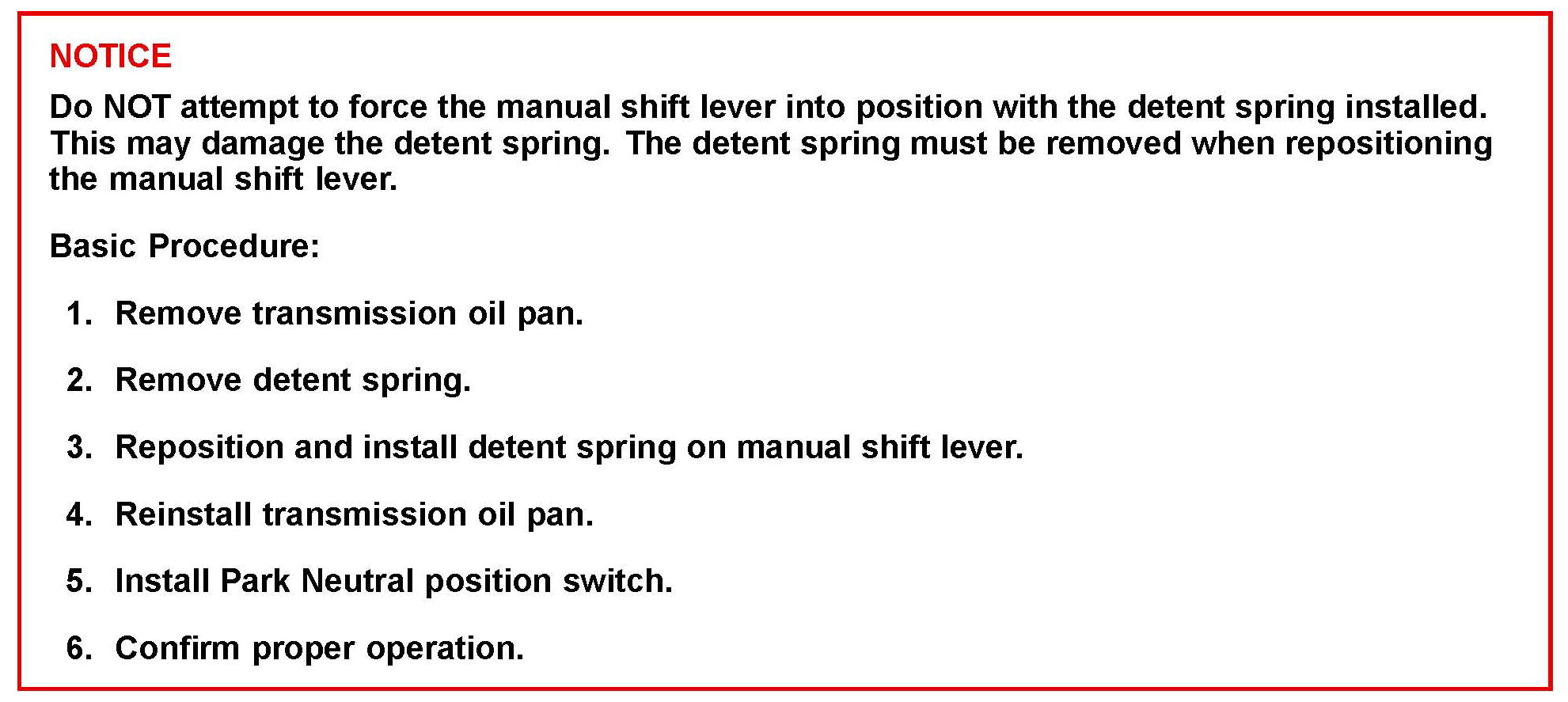 ^ If the manual shift level is rotated without the Park Neutral position switch installed the detent spring may become detached from the manual shift lever. See Figures 1 and 2.
