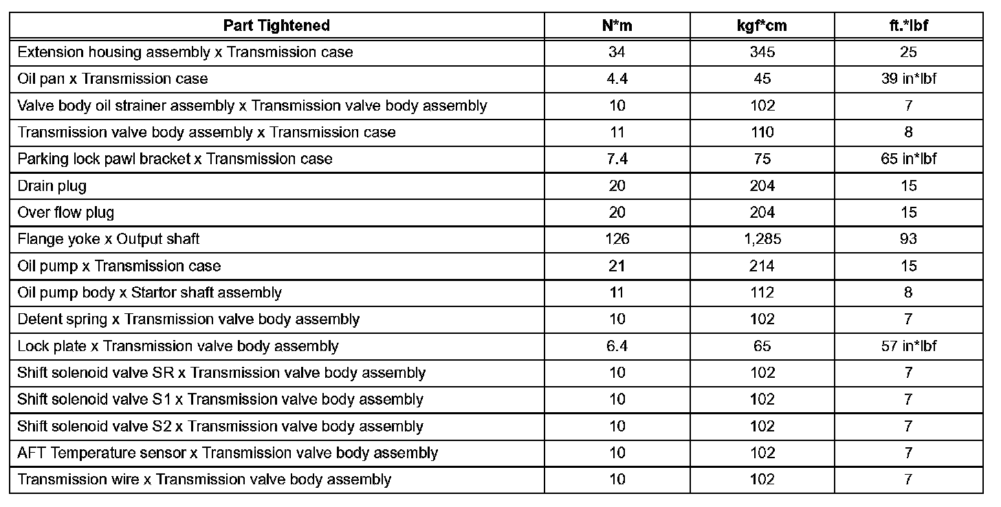 Automatic Transmission-Torque Specifications (Part 1):