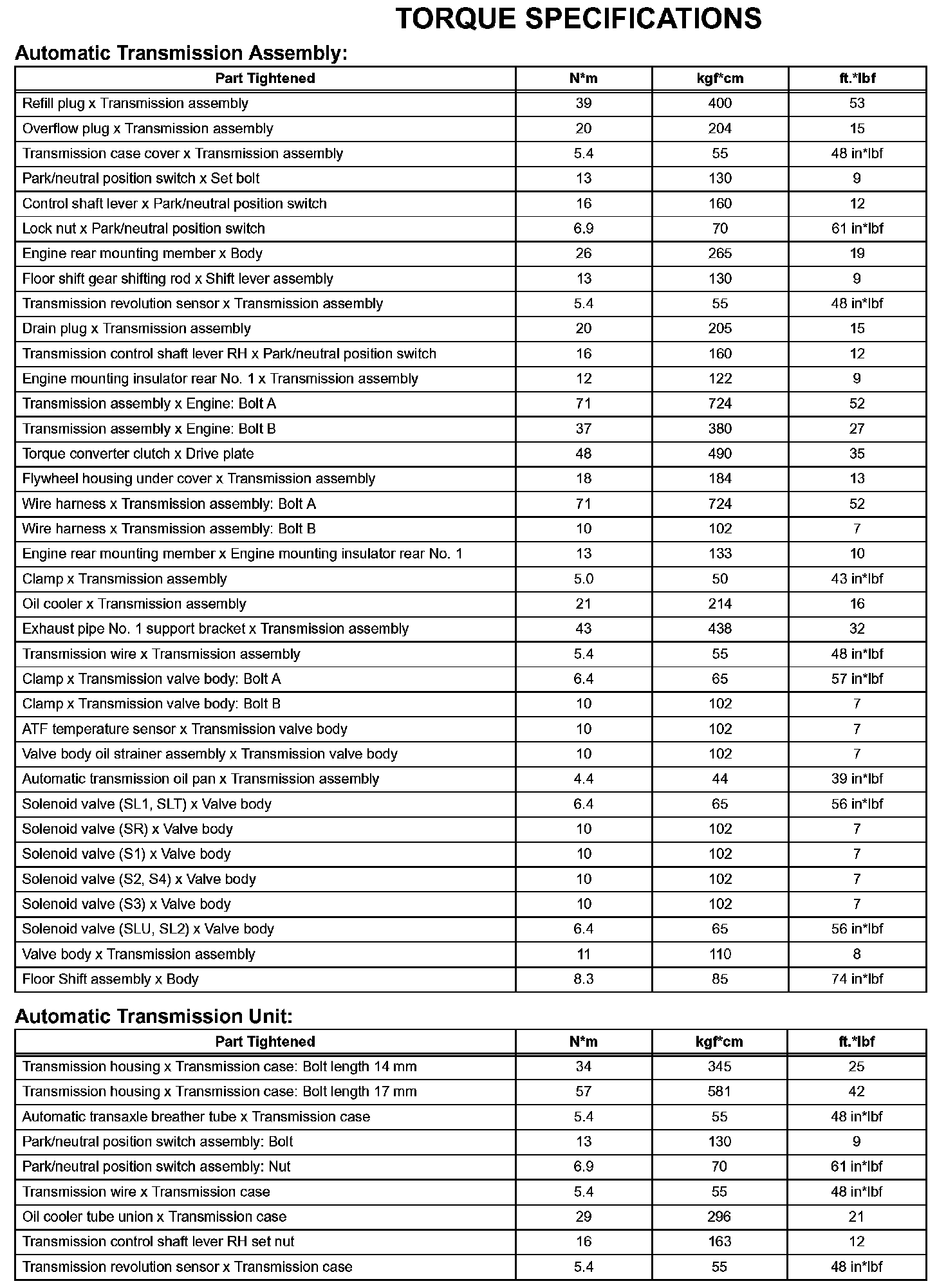 Automatic Transmission - Torque Specifications (Part 1):