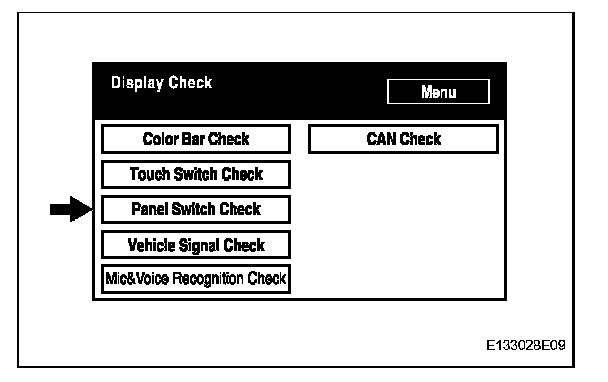 a. Select "Panel Switch Check" from the "Display Check" screen.