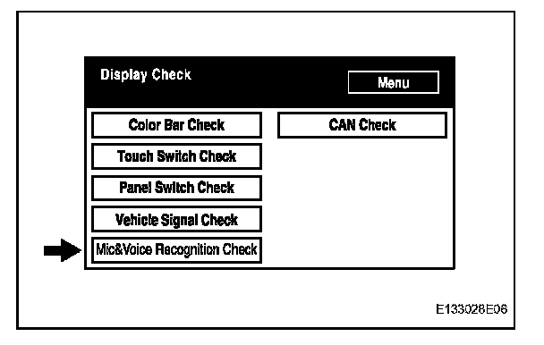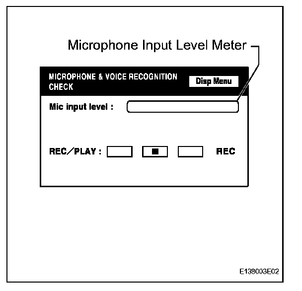 a. Select "Mic & Voice Recognition Check" on the "Navigation Check" screen to display "MICROPHONE & VOICE RECOGNITION CHECK" screen.