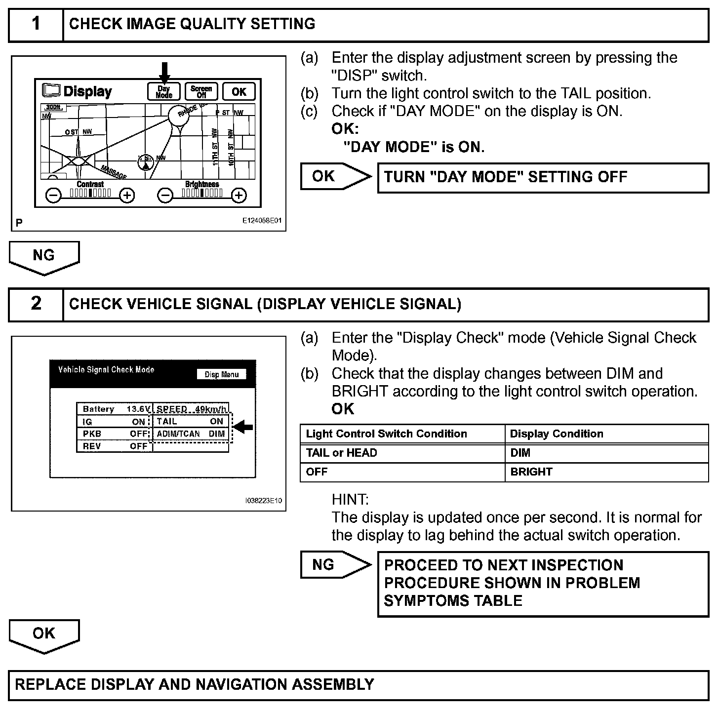 Display Does Not Dim When Light Control Switch Is Turned ON