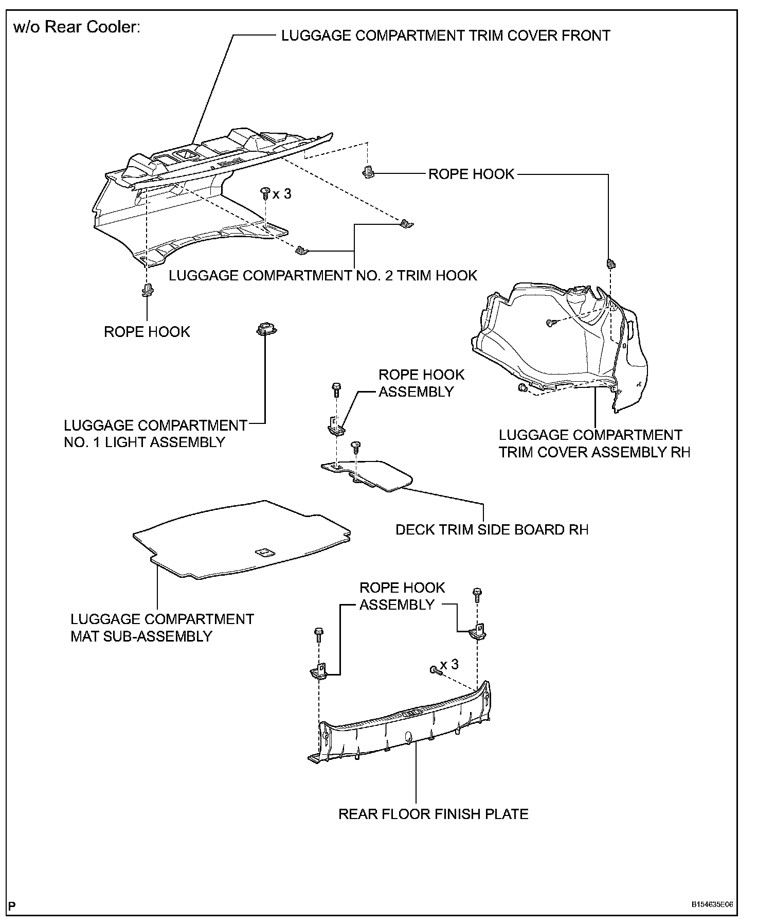 8. REMOVE LUGGAGE COMPARTMENT NO. 2 TRIM HOOK (w/o Rear Cooler)
