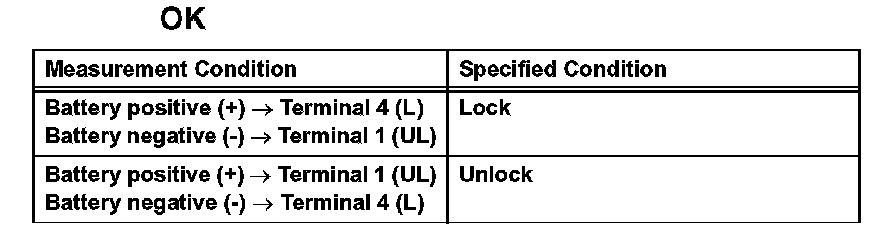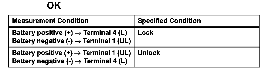 a. Apply battery voltage to the door lock and check operation of the door lock.
