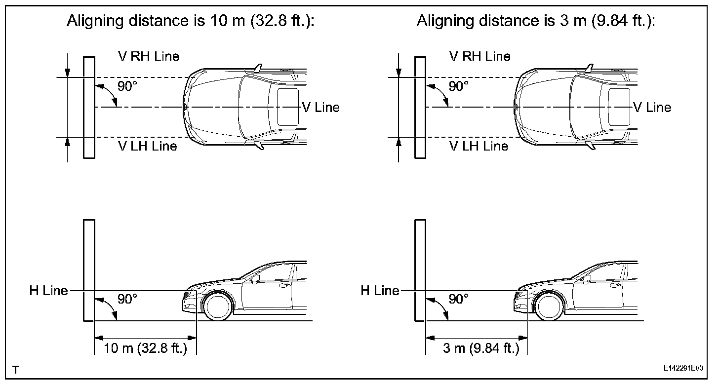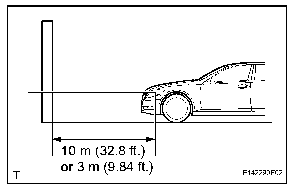 - Create a 10 m (32.8 ft.) distance between the vehicle (headlight bulb center) and the wall.