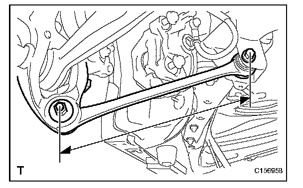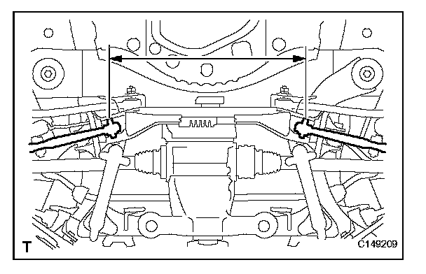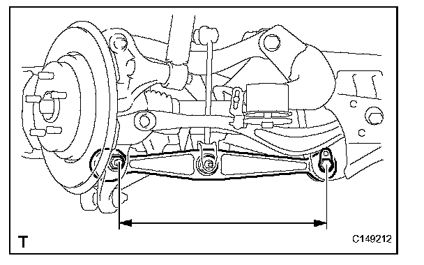 (1) Measure the distance between the centers of the installation bolts of the rear No. 2 suspension arm assembly LH and RH.