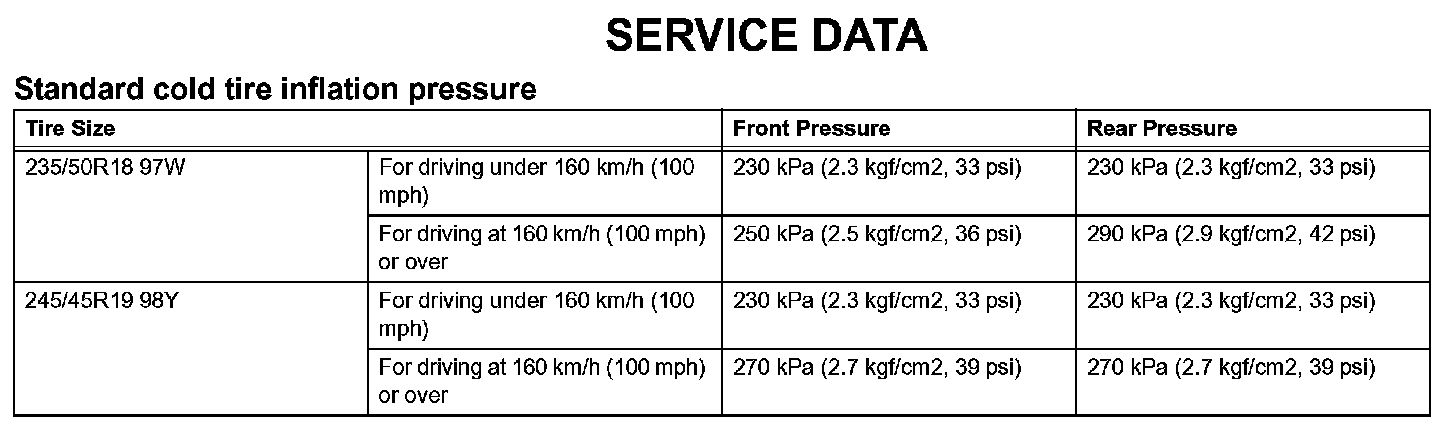 Tire And Wheel - Service Data: