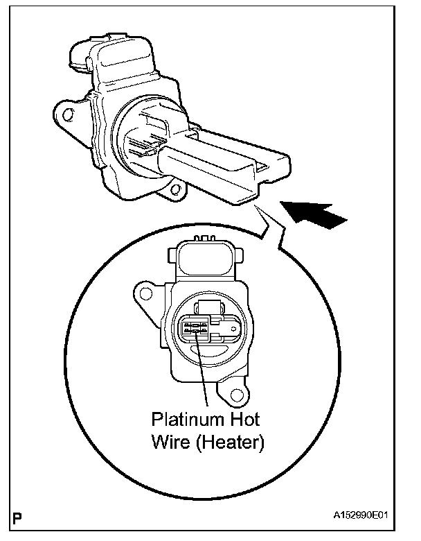 a. Perform a visual check for any foreign matter on the platinum hot wire (heater) of the mass air flow meter shown in the illustration.