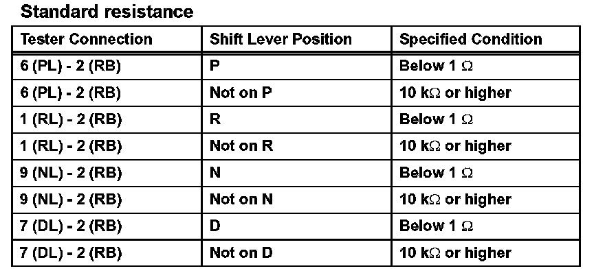 (a) Measure the resistance of the switch when the shift lever is moved to each position.