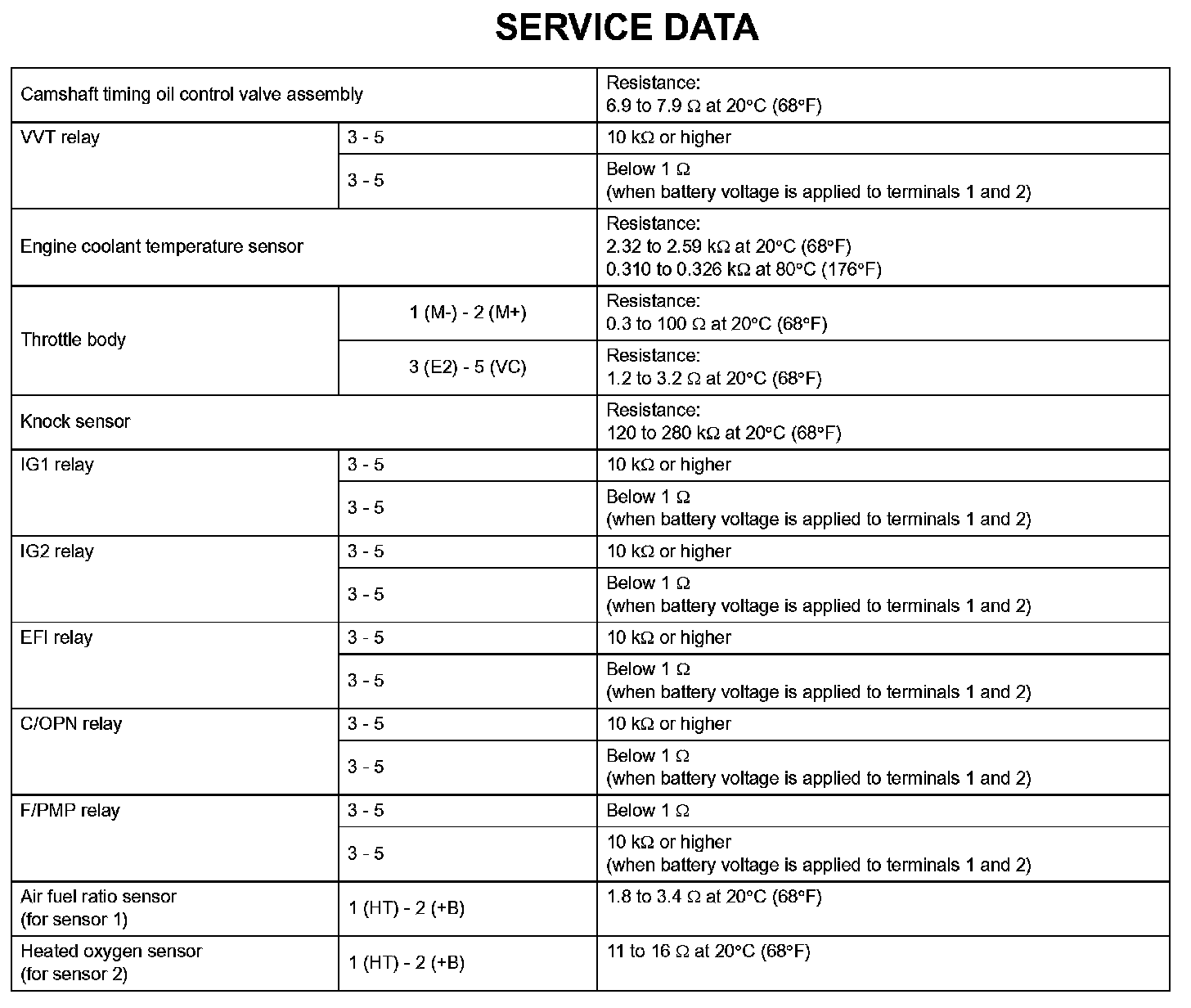 Engine Control System - Service Data: