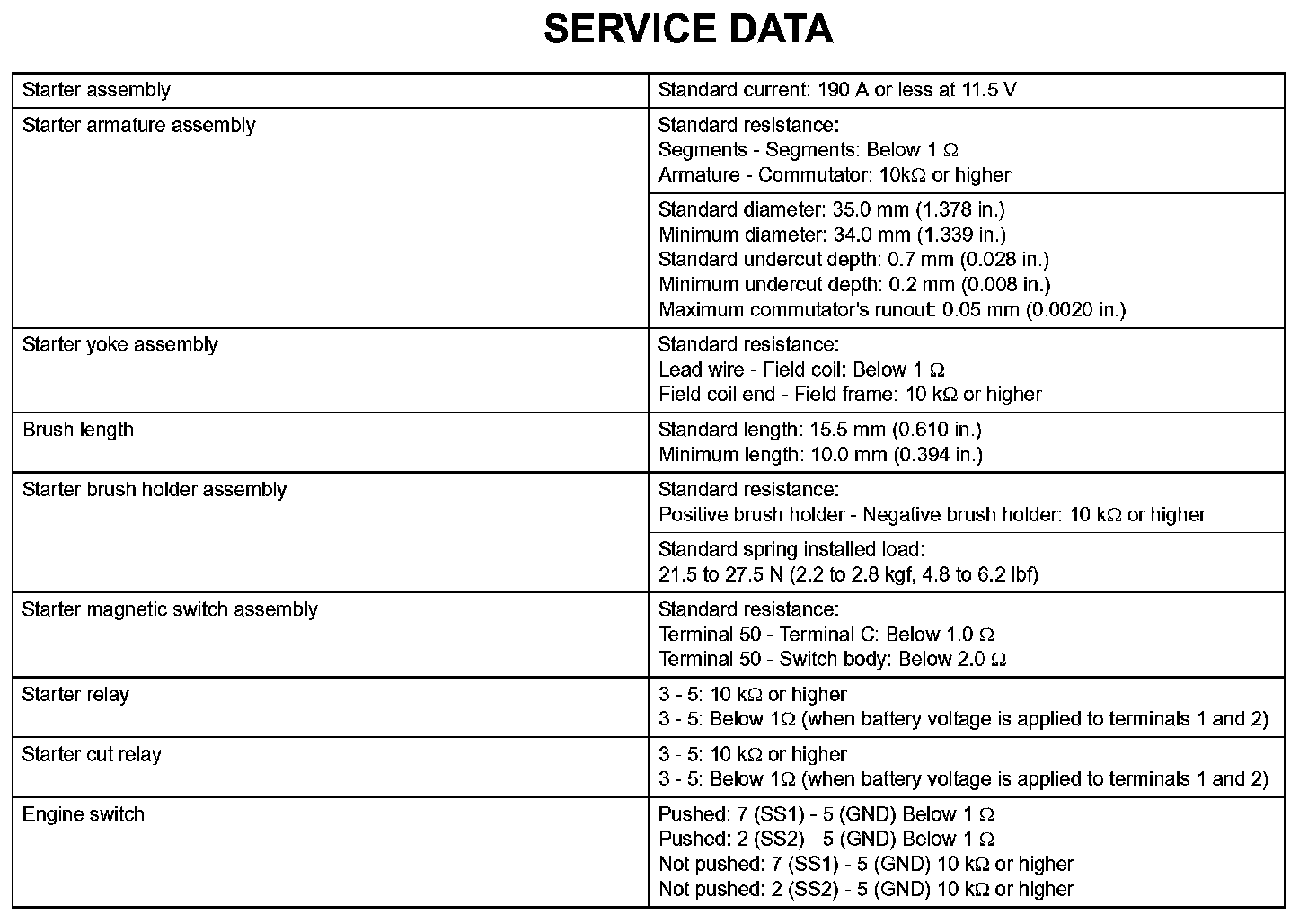 Starting - Service Data: