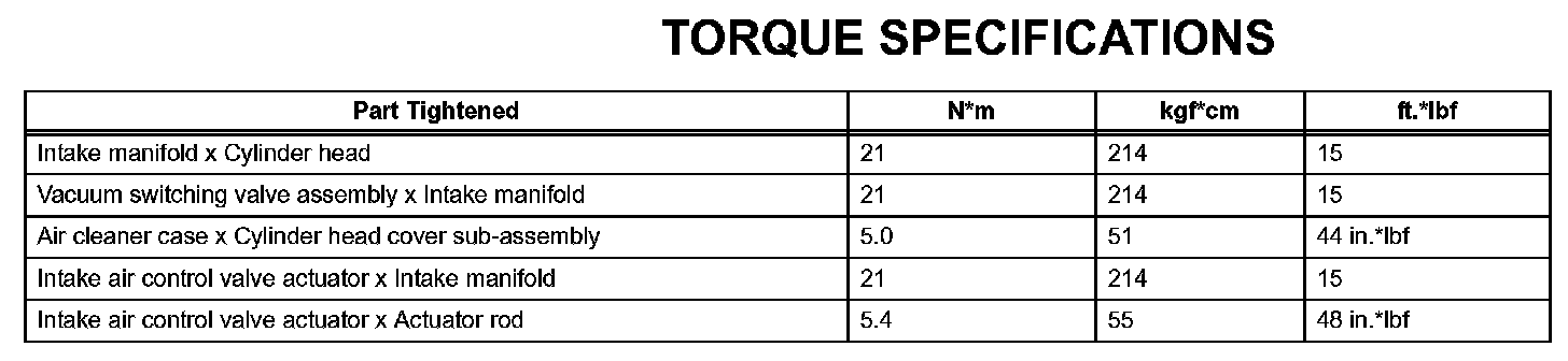 Intake - Torque Specifications: