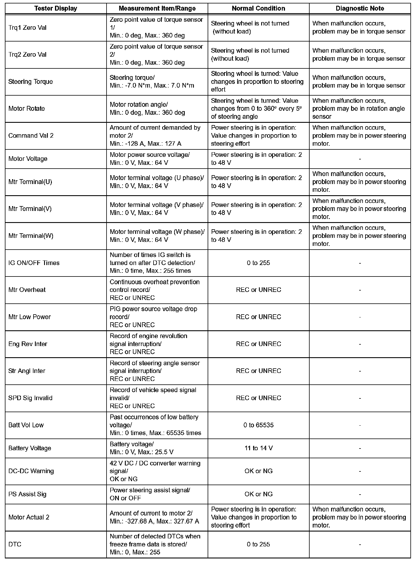 NOTICE: In the table, the values listed under "Normal Condition" are reference values. Do not depend solely on these reference values when deciding whether a part is faulty or not.